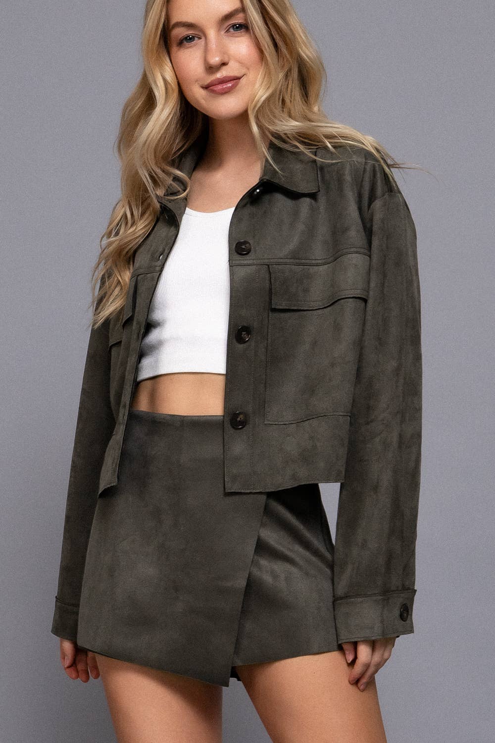 ** LONG SLEEVE FAUX SUEDE SHORT JACKET: Please search SKU# J14032.