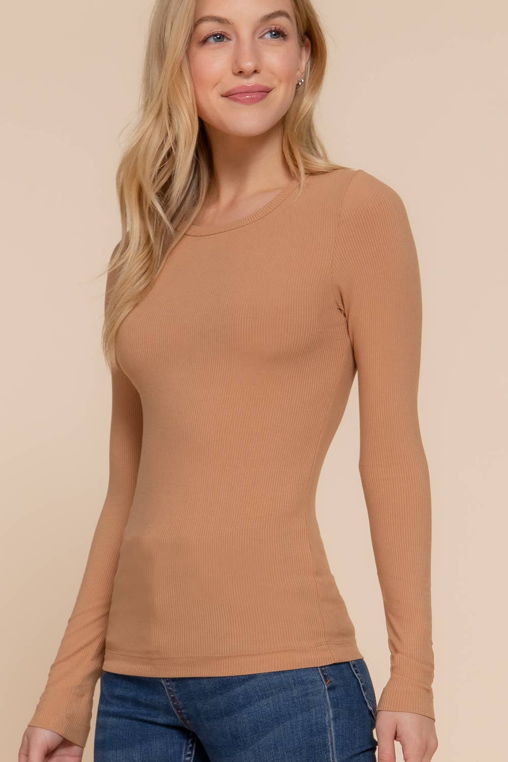 - new arrivals, back in stock, active basic, active usa, rib knit top, ribbed, women basic, long sleeve top, loungewear, everyday, essential, must have, must-have, crew neck top