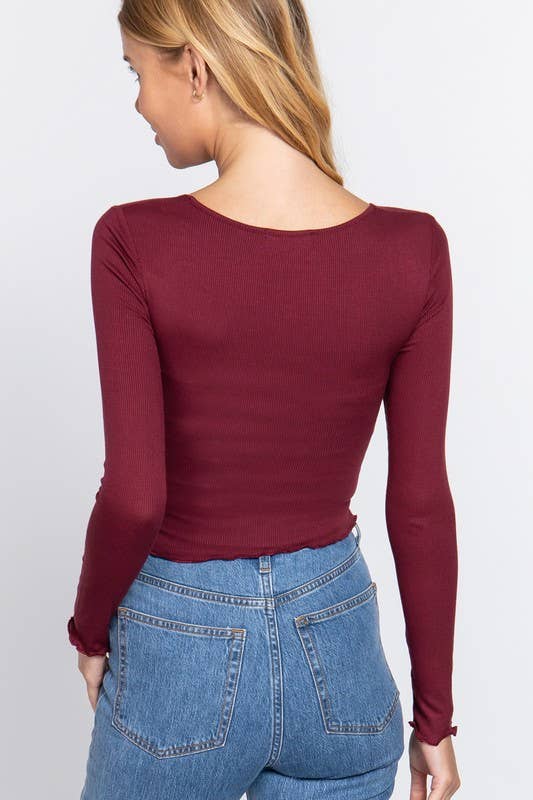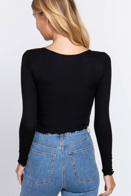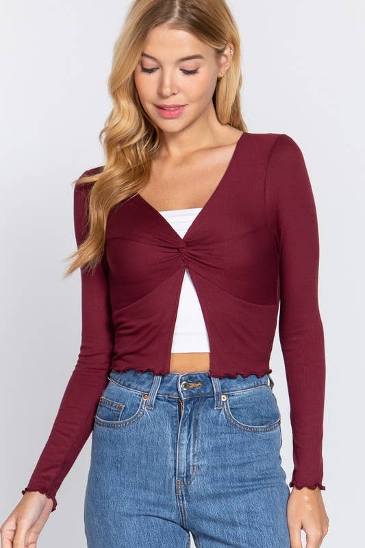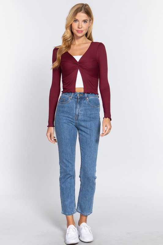 LONG SLEEVE V-NECK FRONT TWISTED KNIT TOP