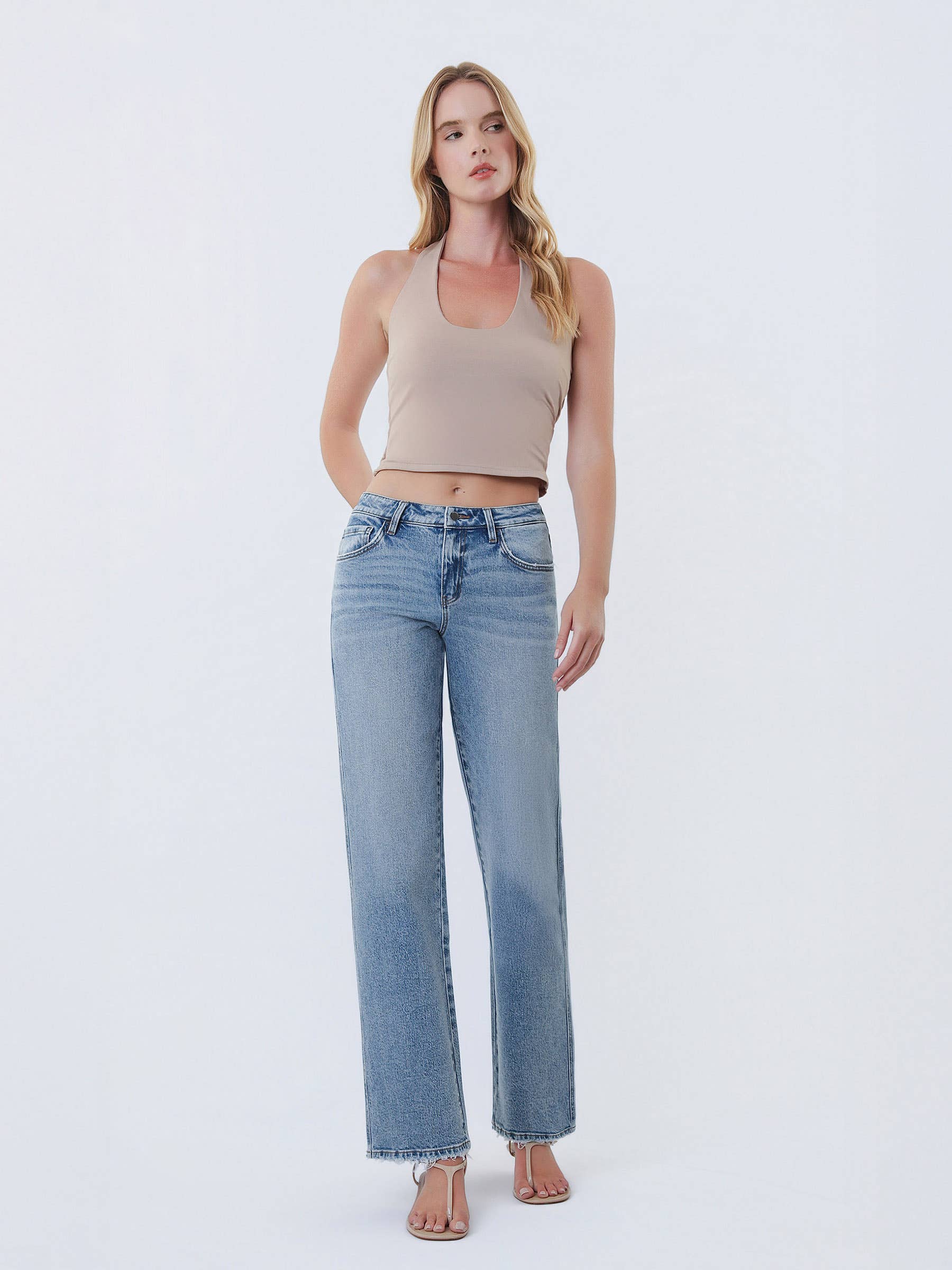 MID RISE MEDIUM WASH SLIM WIDE JEANS
