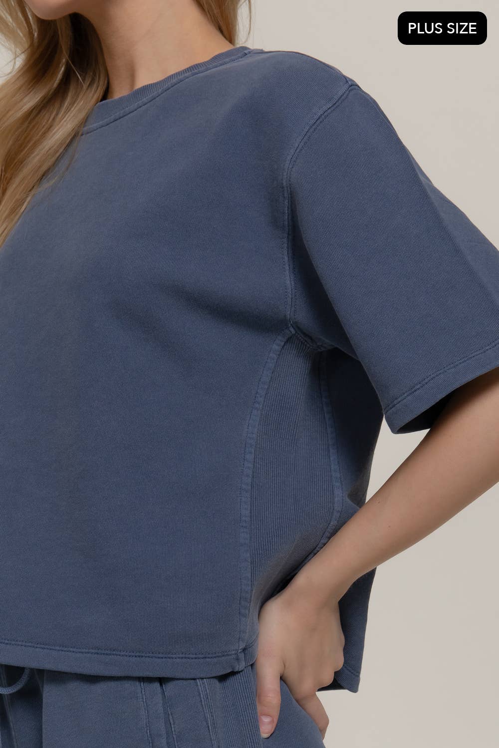- new arrivals, new 2025, active basic, active usa, plus size, plus clothing, plus apparel, curvy, french terry, comfy, comfort wear, loungewear, garment dye, washed, boxy