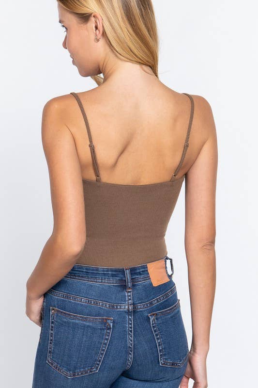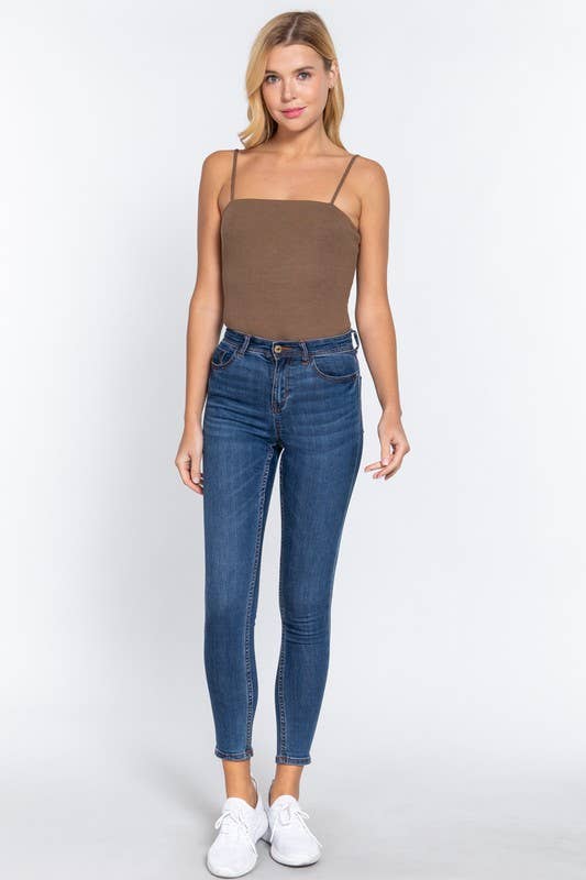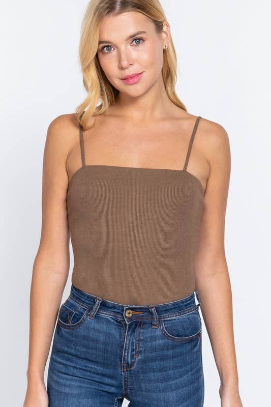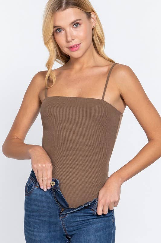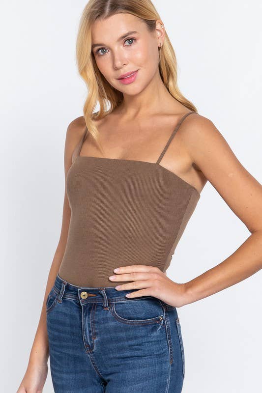 Straight neck two ply rib knit cami bodysuit