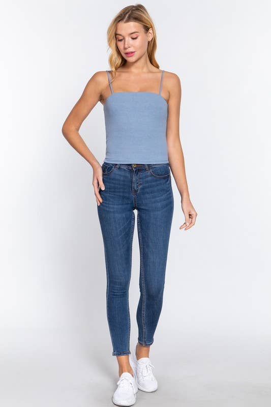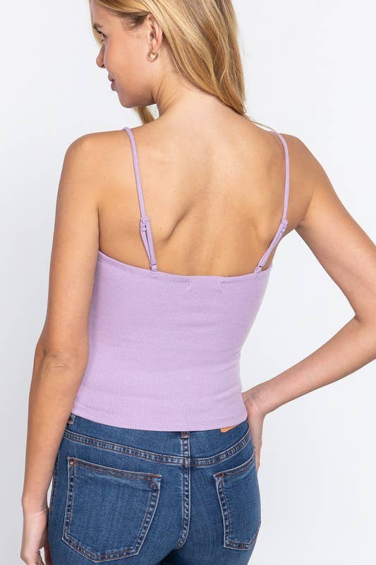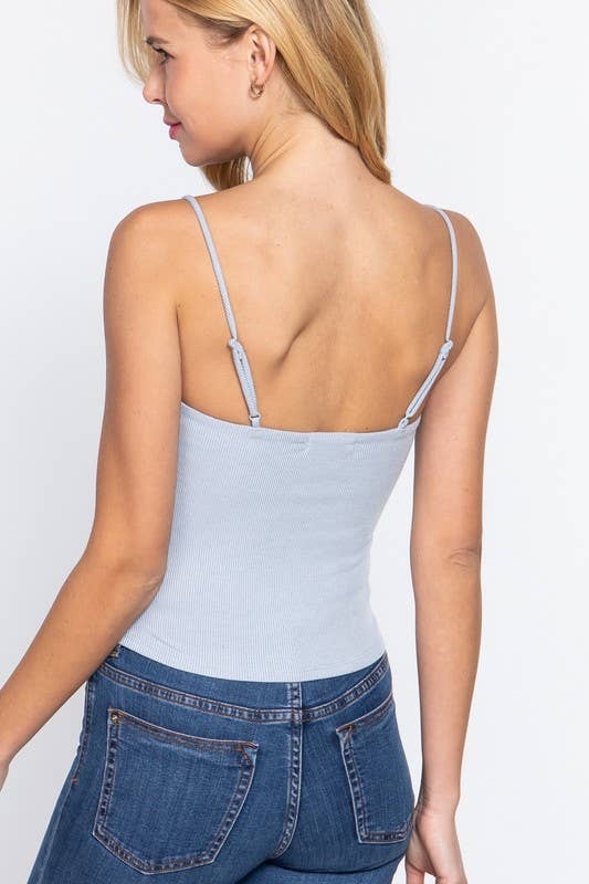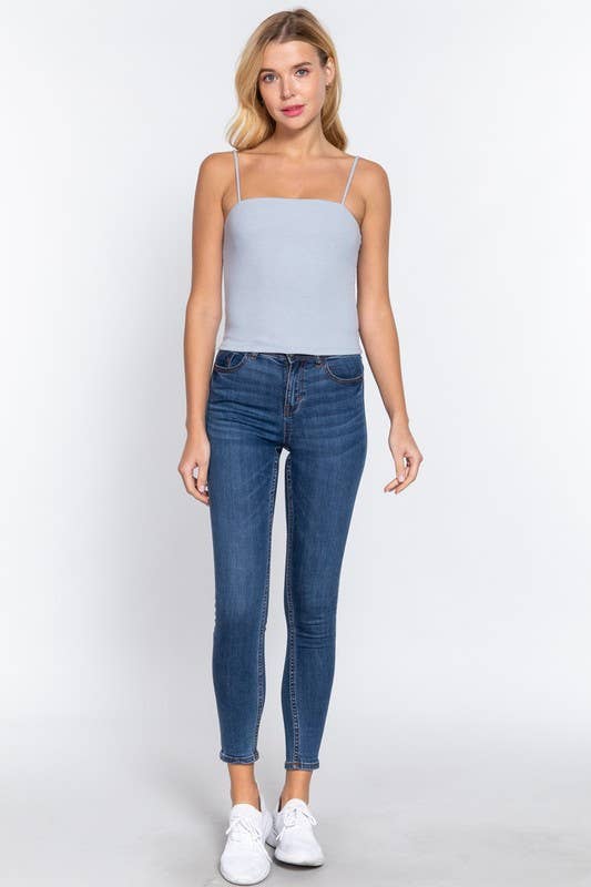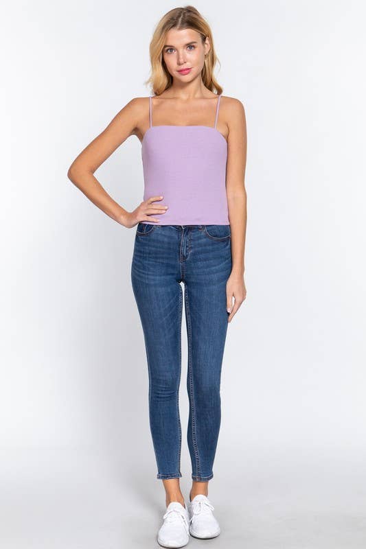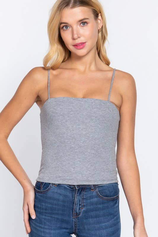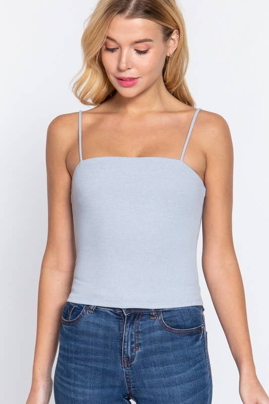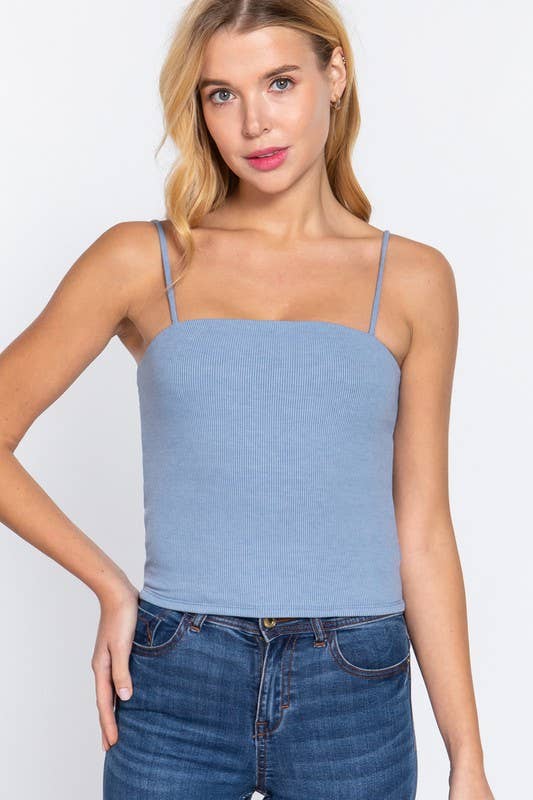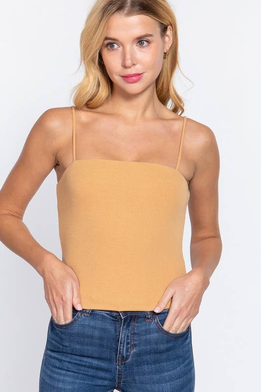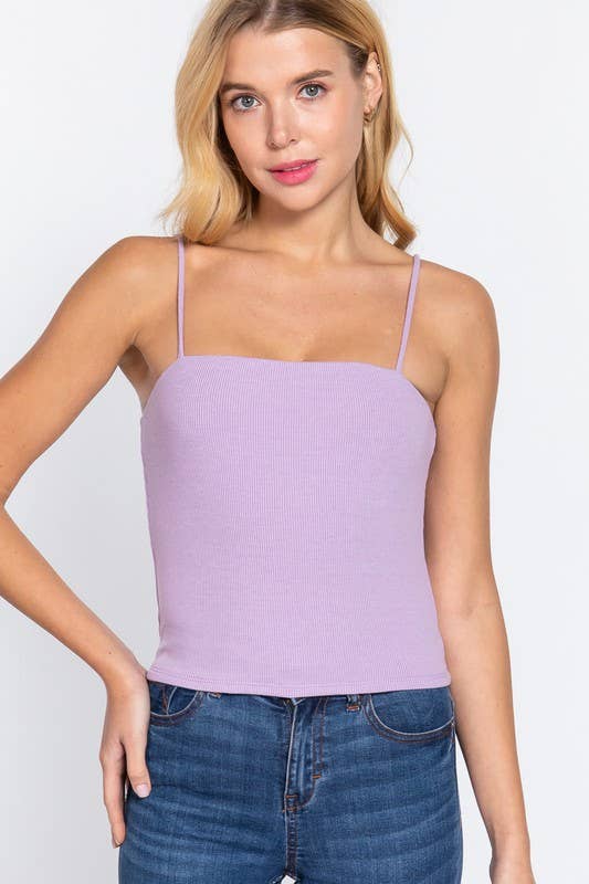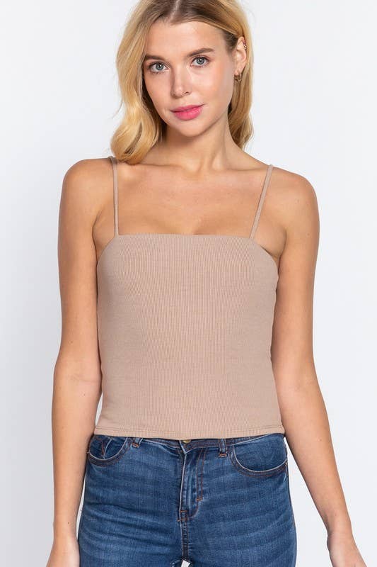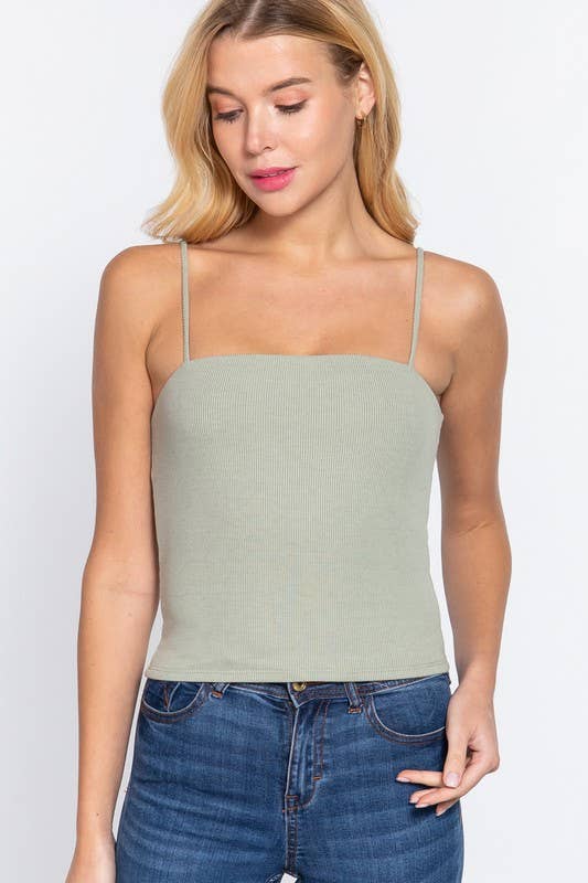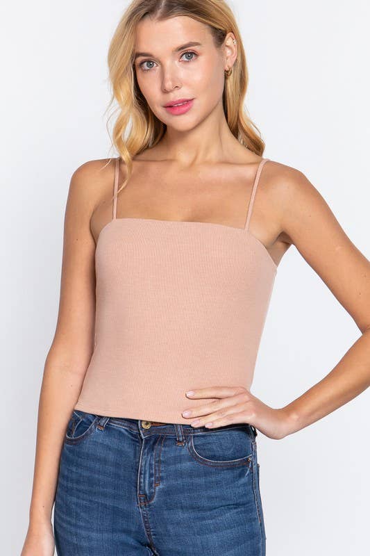STRAIGHT NECK TWO PLY RIB KNIT CAMI TOP
