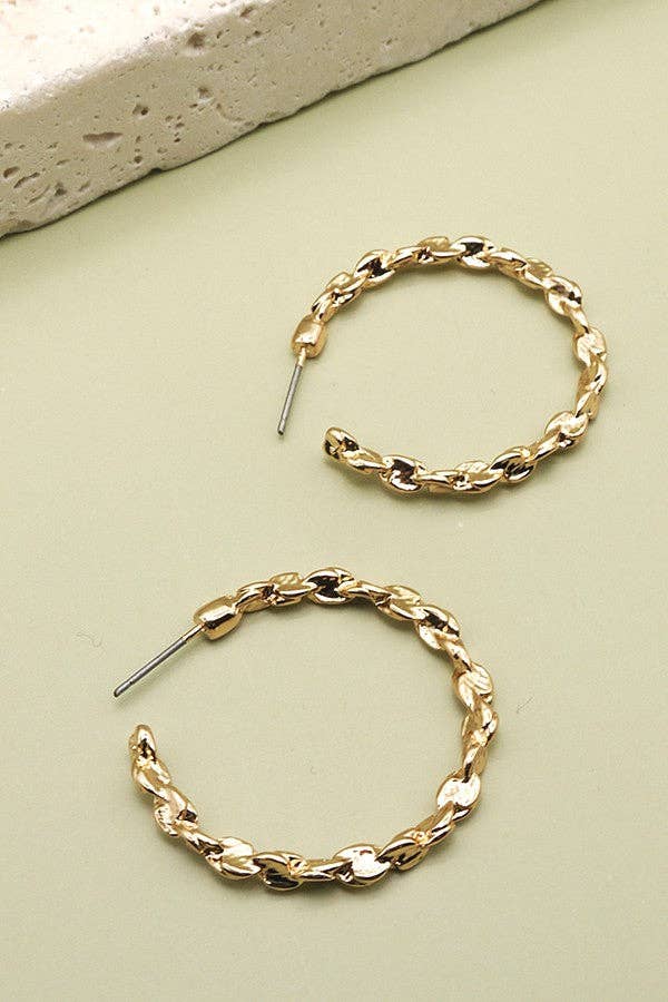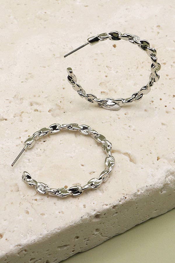 These cute link hoop earrings feature accented strands of lustrous precious metal intertwined with one another in a striking and statement-worthy hoop design.